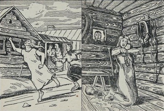 Краинский детально описывает припадки кликуш, которые он поначалу намеренно не пытался остановить, чтобы во всех деталях зафиксировать симптоматику. На основании полученных данных он проводит ранжирование больных, лучше всего оно видно по ащепковской эпидемии. Первый круг — больные, с которых началась эпидемия. В Ащепково это Василиса Алексеева и Марфа Петрова, обе женщины страдали припадками и выкликали односельчанку Сиклитинью как испортившую их колдунью. Кстати, социальное напряжение в деревне было столь сильно, что семье Сиклитиньи стали открыто грозить расправой, и ее даже пришлось удалить из деревни. Больные первого круга, согласно Краинскому, были вовсе не больными, а хитрыми (в случае Василисы) или не очень (в случае Марфы) притворщицами. Все их действия и припадки были симуляциями, причем в случае Василисы действия полностью контролировались разумом, в случае же Марфы припадок запускался сознательно, но сам процесс уже не контролировался. Первая кликуша Василиса оказалась негипнабельной, а значит, и не могла внушать себе какие-либо болезненные состояния. Третий круг — случайные люди, отнесенные народом к категории больных. Такими оказались двое мужчин, один из которых во время работы в городе некоторое время пролежал в психиатрической больнице и несмотря на то, что был совершенно здоров, причислялся людьми к кликушам, а второй в силу своей малой развитости «в пылу общего возбуждения, охватившего население деревни, струсил <…> вообразив, что испорчен и он»[35]. Самым интересным представляется средний круг — не притворщицы, а настоящие кликуши, впадающие в неконтролируемые припадки. Они оказались чрезвычайно гипнабельными: для того чтобы некоторых из них ввести в транс, достаточно было просто надавить пальцами на глазные яблоки, их припадки без труда прекращались внушением.